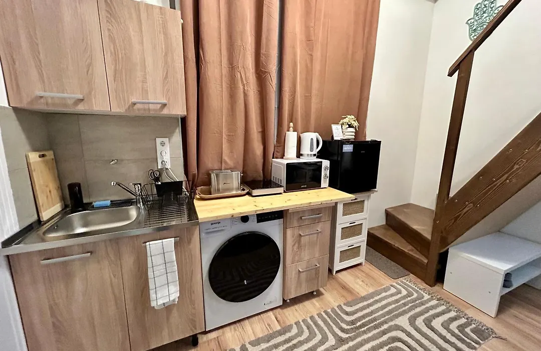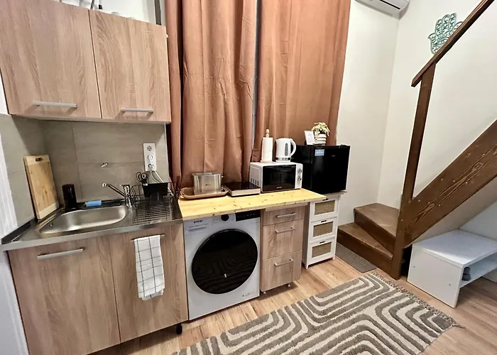 W obiekcie jest kuchnia z czajnikami elektrycznymi, lodówką i przyborami kuchennymi. Odległość do stacji metra Blaha Lujza ter wynosi mniej niż 350 m.